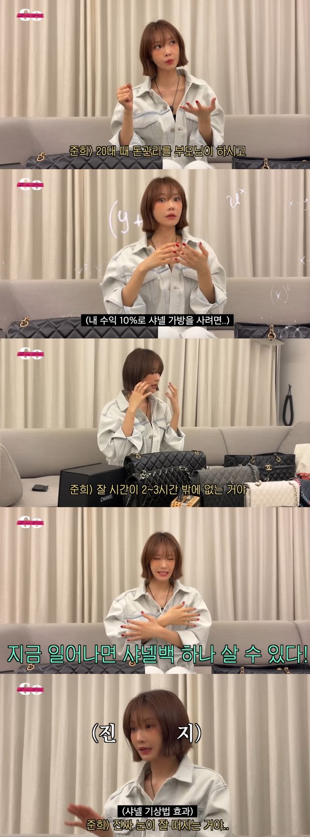 고준희는 "아빠가 선물로 사준 다음엔 내가 사야하지 않나. 20대 때 돈관리를 부모님이 하시고 내가 버는 것에 10%만 쓸 수 있었다"며 "나머진 저축이다. 그럼 미친듯이 일해야 했다"고 운을 뗐다.