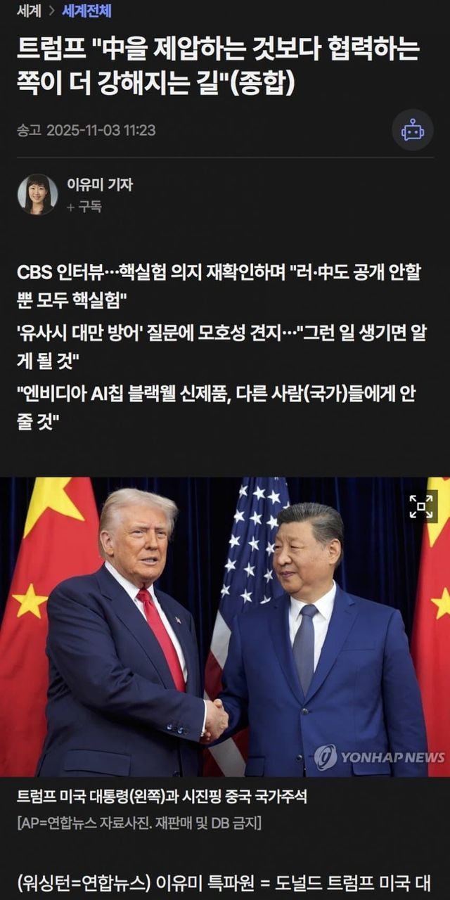 트럼프 "中을 제압하는 것보다 협력하는 쪽이 더 강해지는 길"