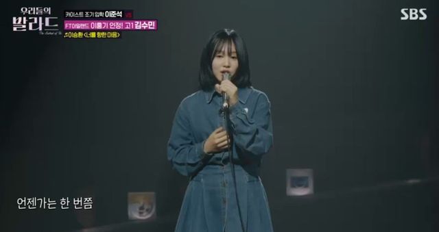 4일 SBS ‘우리들의 발라드’에선 이준석 대 김수민의 2라운드 경연이 펼쳐졌다.
