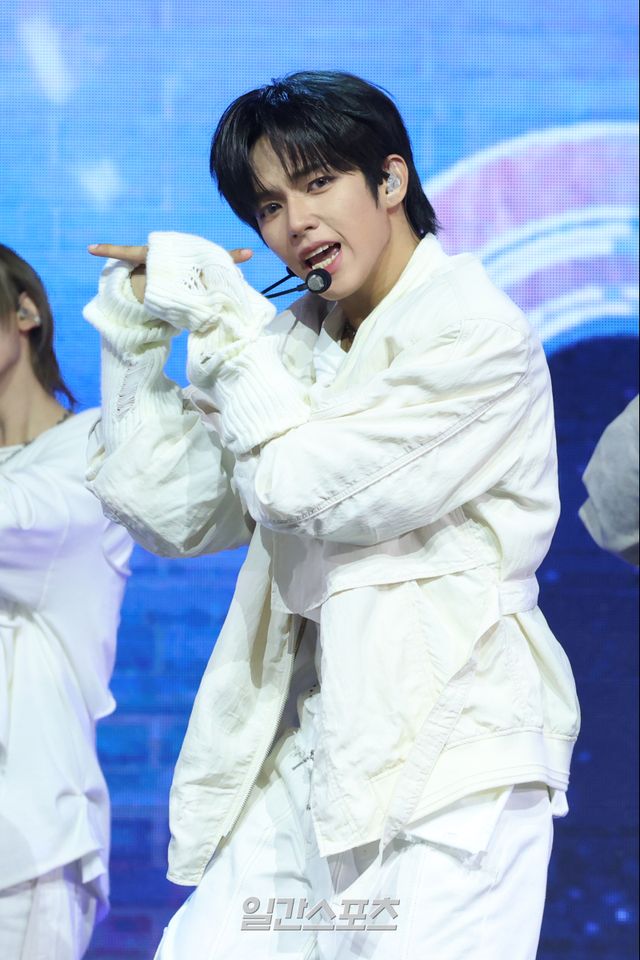 그룹 아홉(AHOF) 제이엘이 4일 오후 서울 광진루 예스24라이브홀에서 열린 두 번째 미니 앨범 'The Passage'(더 패시지) 발매 기념 쇼케이스에 참석해 타이틀곡 무대를 선보이고 있다. 타이틀곡 '피노키오는 거짓말을 싫어해'는 변덕과 불안, 흔들림 속에서도 '너'에게만은 솔직하고 싶은 마음을 아홉 멤버들의 깊은 감성으로 풀어냈다. 서병수 기자 qudtn@edaily.co.kr /2025.11.04/