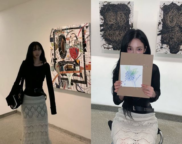 미술관을 거닐며 그림을 감상하거나 직접 드로잉 작품을 들고 있는 모습도 눈길을 끈다. 카리나는 특유의 고급스러운 아우라로 어떤 공간에서도 ‘화보 장인’다운 존재감을 자랑했다.