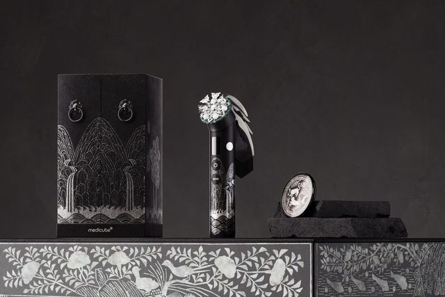‘뷰티 디바이스가 공식 기념품?’ 네, 맞습니다. 메디큐브의 에이지알 부스터 프로 일월오봉도 에디션이 2025 APEC 정상회의 공식 기념품으로 선정됐다. 국립박물관문화재단과 협업해 전통미와 첨단 뷰티테크를 한 패키지 안에 녹여냈다는 점이 인상적. 노리개 장식이 달린 자개장형 케이스를 열면 ‘일월오봉도’가 병풍처럼 펼쳐지고, 디바이스 화면엔 ‘신라의 미소’로 불리는 경주 얼굴무늬 수막새가 등장한다. 하이테크와 헤리티지의 만남, 이보다 더 K-뷰티스러울 수 있을까?