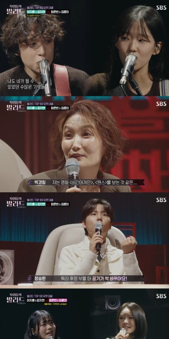 4일 방송된 SBS 예능 프로그램 '우리들의 발라드'에서는 단 한 팀만이 살아남는 3라운드 '듀엣 경연'이 펼쳐졌다.