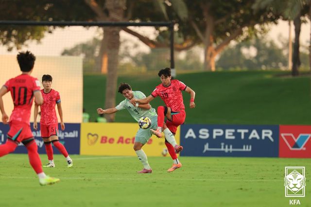 한국은 전반 40분 경 우측 하프스페이스 돌파에 성공한 김예건이 직접 오른발 슈팅을 시도했는데 상대 골키퍼 선방에 막혔다.