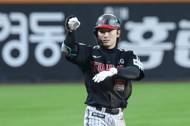 한화 이글스와의 한국시리즈(KS·7전 4승제) 5경기에 모두 출전한 그는 타율 0.409(22타수 9안타) 3타점 6득점을 올렸다. 2루타 3개, 3루타 1개를 기록해 장타율도 0.636이나 됐다. LG가 통합 우승을 차지했던 2년 전 KS에선 타율 0.167에 그쳤지만, 올해는 달랐다.