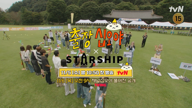tvN ‘출장 십오야’ X 스타쉽 전국체전 편은 오늘(5일, 수) 밤 10시 50분 첫 방송을 시작으로 12일, 19일까지 3주 간 안방극장을 찾아간다. 풀 버전은 방송 이후 다음날 오전 9시 유튜브 ‘채널 십오야’를 통해 만날 수 있다.