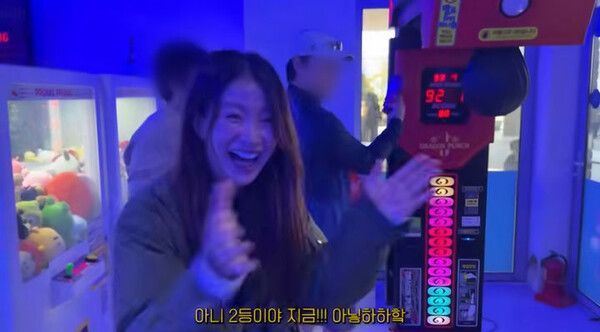 이시영은 지인들과 케이블카를 탔고 오락실에 갔고, 만삭의 몸인데도 펀치 기계에서 강펀치를 날렸다.