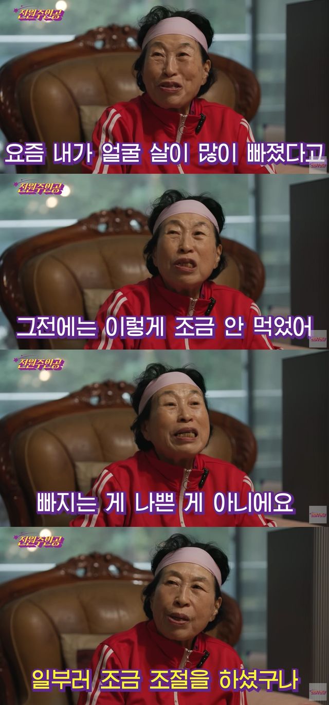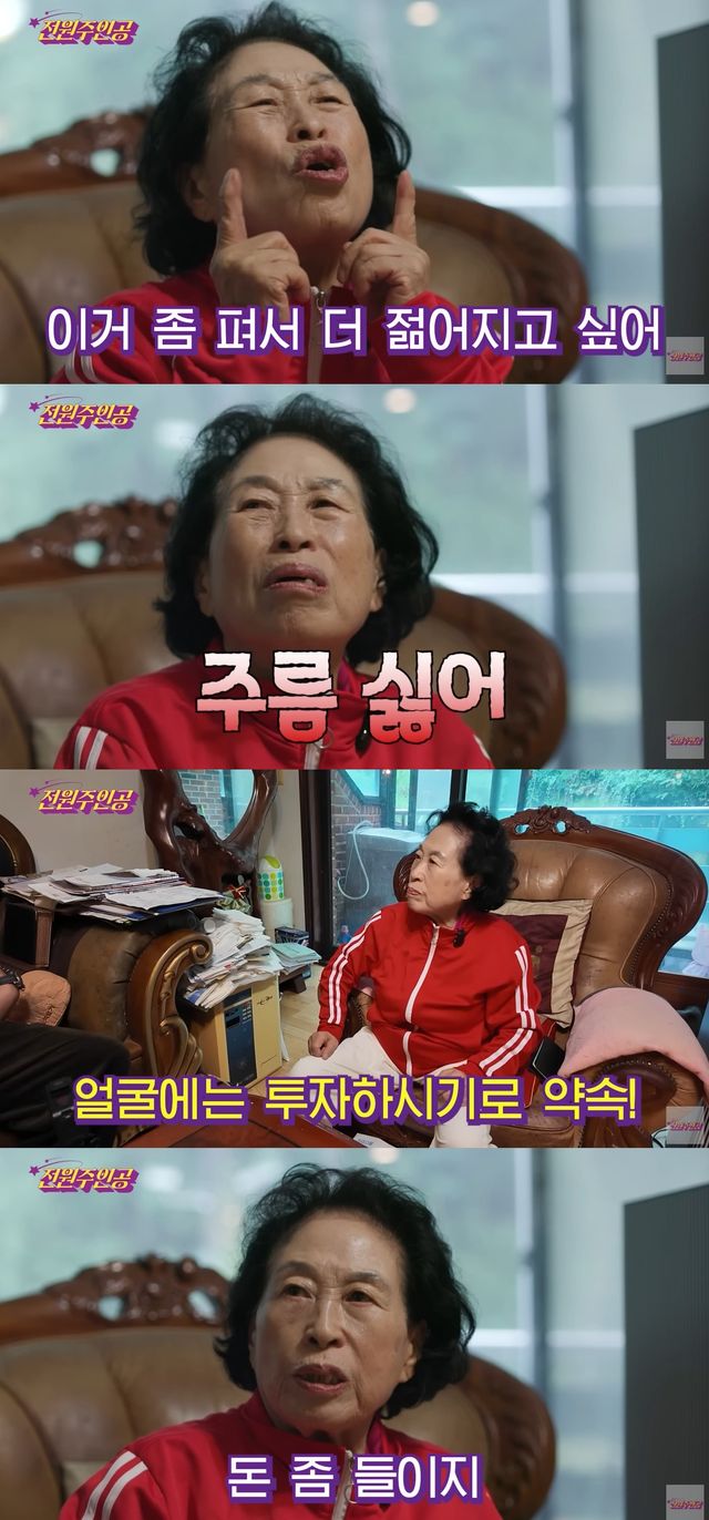 이어 전원주는 외모 고민도 털어놨다. "그런데 내 한가지 흠은 얼굴에 주름이 생기지 않나"라고 운을 뗀 그는 "이걸(주름) 펴서 더젊어지고 싶다. 맨날 깔깔 웃으니 여기가 주름이 생긴다. 요즘 주름 때문에 (얼굴을 잡고) 호호 이렇게 웃는다"고 밝혀 눈길을 끌었다.