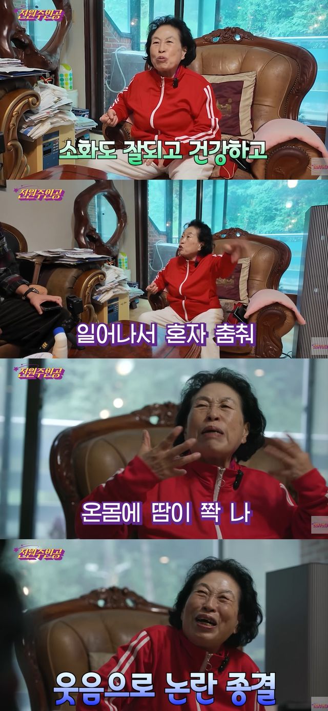 전원주는 "소화가 안 되면 일어나서 춤을 춘다. 온몸에 땀이 쫙 난다. 그러니 지금도 아픈 곳이 없다"며 건강에 자부심을 보였다. 이에 제작진은 "건강이상설 나오지 않았나"라고 물었다.