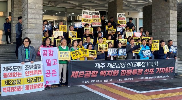 비상도민회의는 “오는 11월 10일이면 제2공항 건설 계획이 발표된 지 10년이 된다”며 “성산읍 신산리 일대에 제2공항이 건설된다는 청천벽력 같은 뉴스에 가슴이 벌벌 떨렸던 기억은 지금도 생생하다”고 말했다.