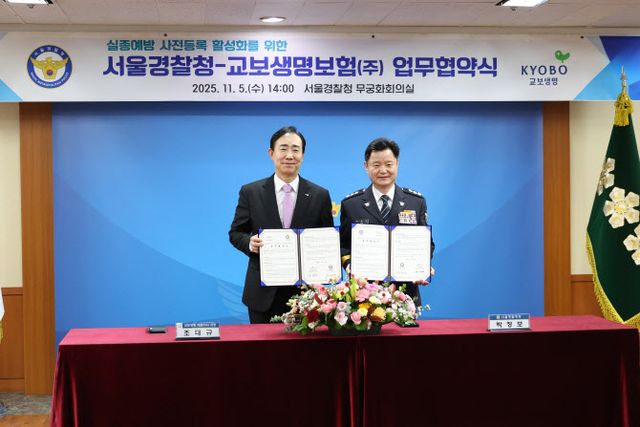서울경찰청은 5일 오후 종로구 청사에서 교보생명과 실종예방 사전등록 활성화를 위한 업무협약을 체결했다고 밝혔다.