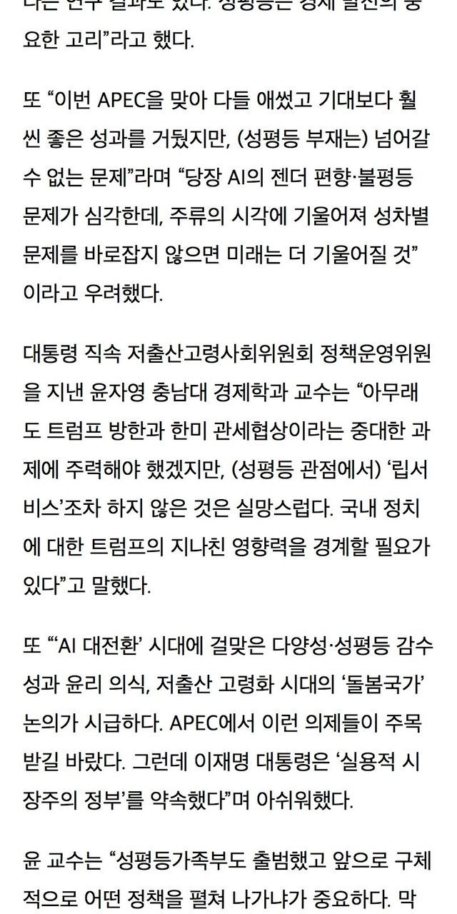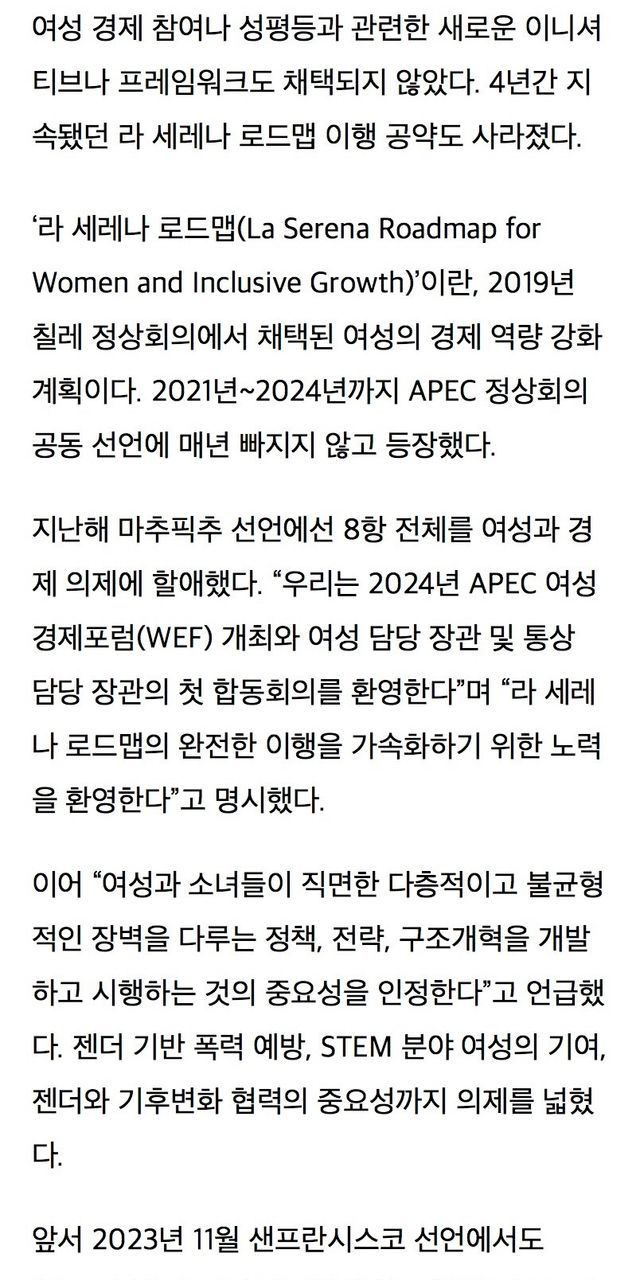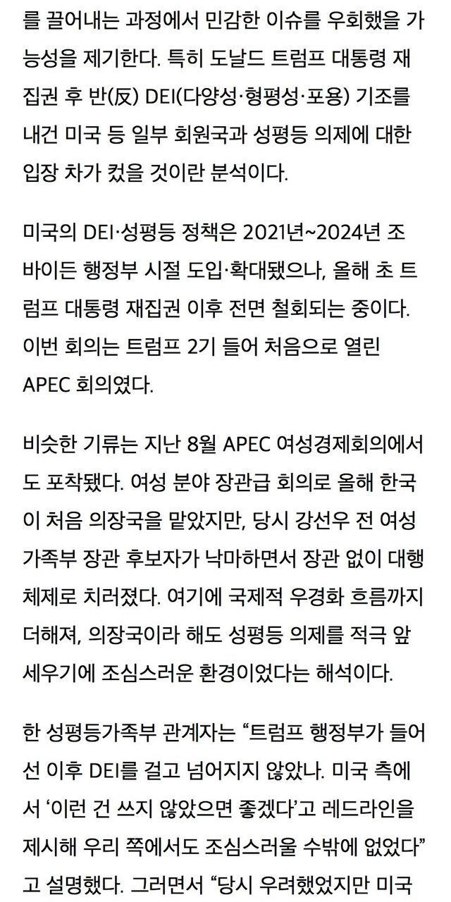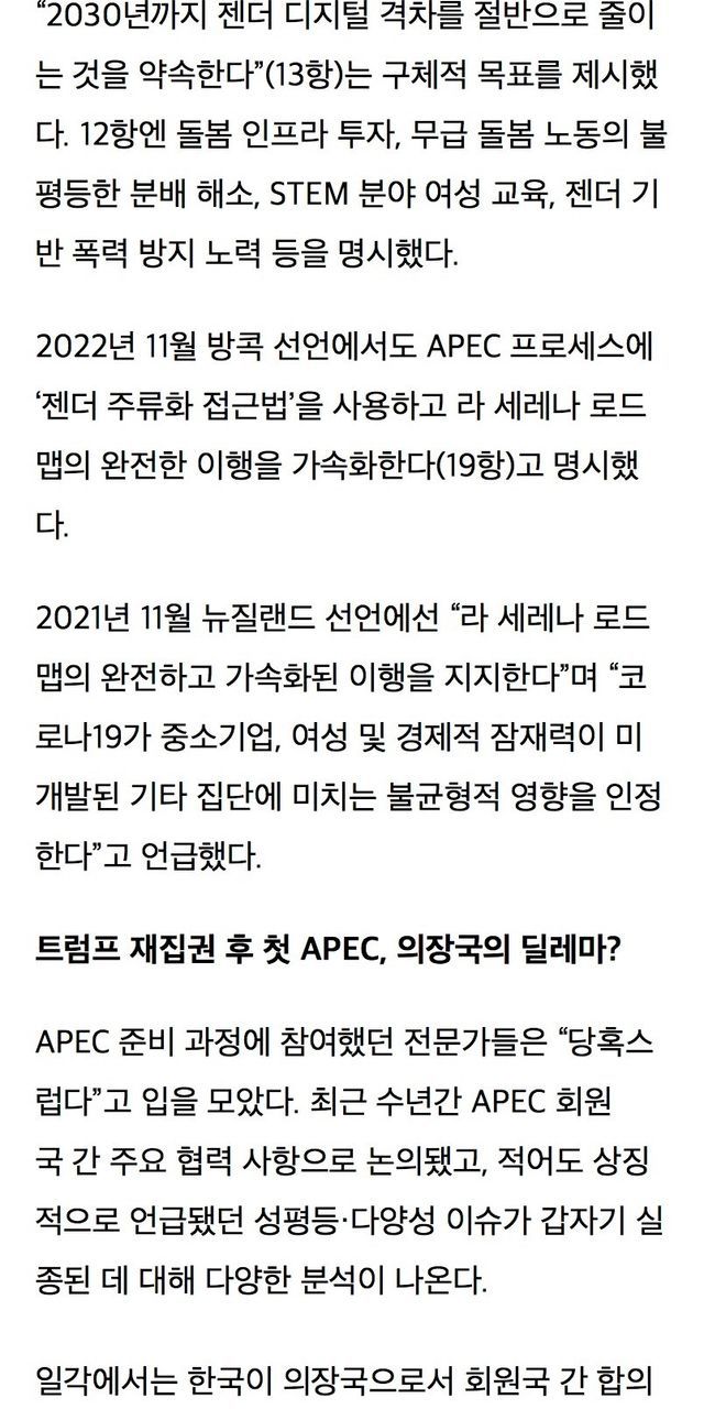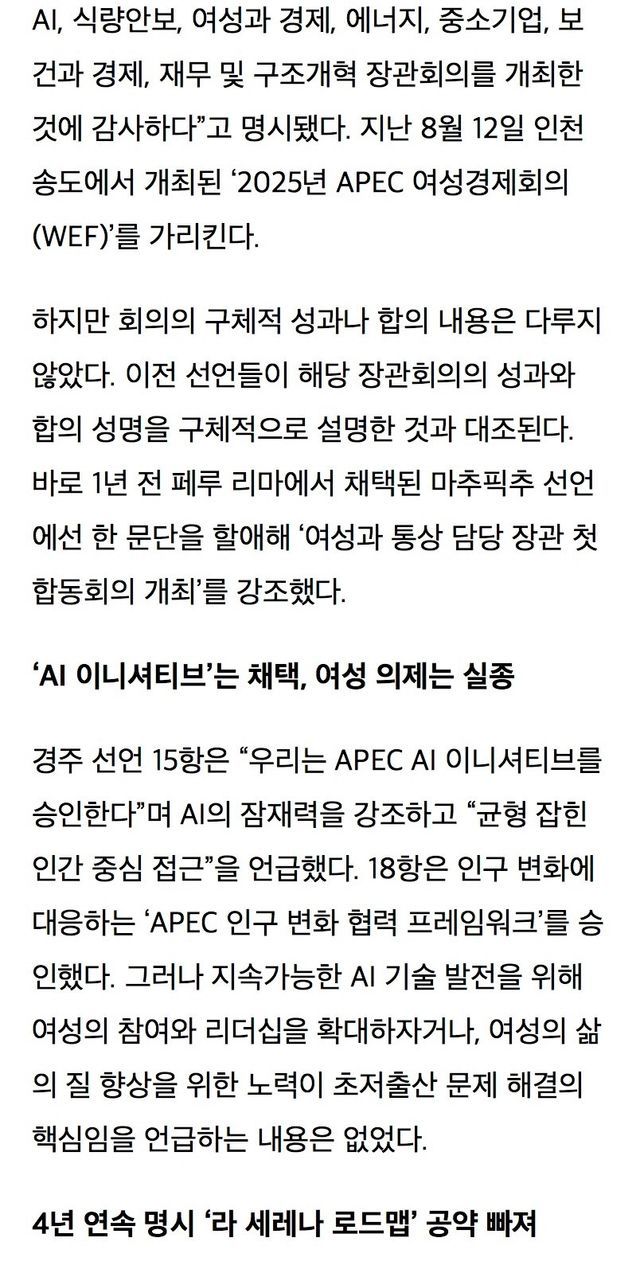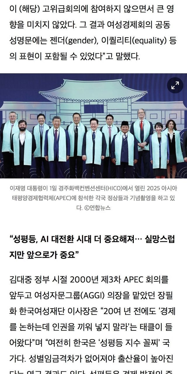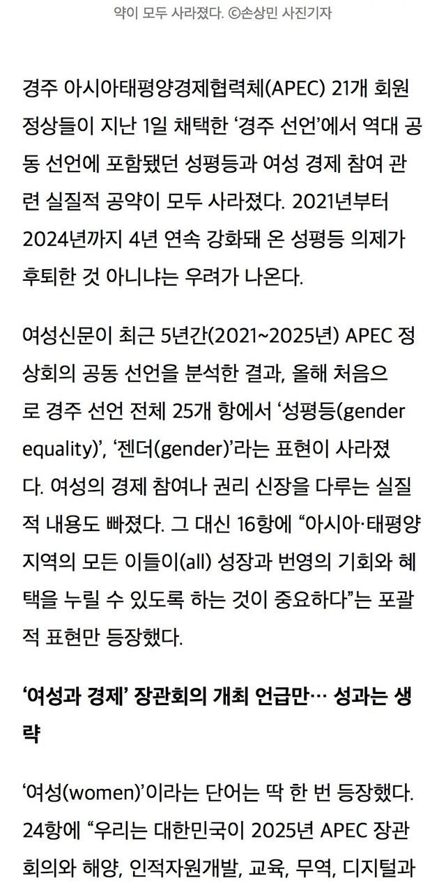 2025 APEC 경주선언, '성평등'은 빠졌다