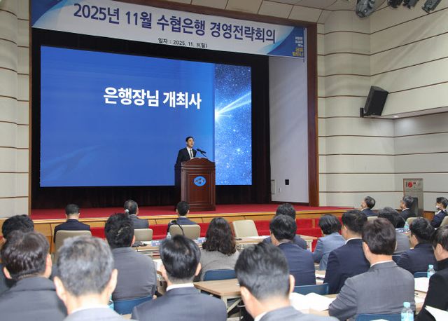 수협은행은 이날 경영전략회의에서 선제적 기업여신 확보를 위한 심사 개편방안, 전 직원의 고른 여수신 역량 보유를 목표로 추진 중인 유니버셜뱅커 활성화 등을 논의했다. 그룹장별 모두발언을 통해 개인·기업금융 고객 확대, 건전성 및 리스크관리 강화, 영업점장 리더십의 중요성에 대한 의견을 교환했다.