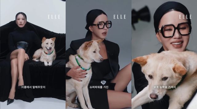 엄정화는 5일 자신의 인스타그램에 엘르 코리아와 함께한 반려견 동반 화보와 영상을 게재했다.