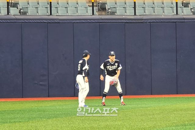 문현빈은 5일 서울 고척스카이돔에서 열린 야구 국가대표팀 소집 훈련에서 박해민(LG 트윈스)과 함께 외야 수비 훈련을 했다. 박해민은 공을 잡을 때는 물론, 타구가 오기 전까지 동작 하나하나 후배에게 보여주며 설명을 이어갔다. 두 선수는 수비 훈련을 모두 마치고 더그아웃으로 돌아올 때까지 끊임없이 이야기했고, 문현빈은 선배의 소중한 조언을 머리속에 새겨 넣었다.