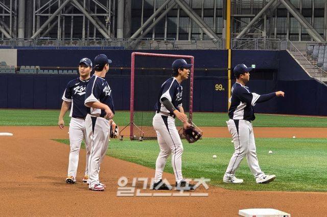 이번 국가대표엔 3루수 자원이 많다. 각자의 소속팀에서 3루수가 주 포지션인 선수만 5명이다. 타격 훈련 중인 김영웅(삼성 라이온즈)이 잠시 빠져 있었을 뿐, 김영웅은 지난 2일부터 3일까지 고양 국가대표야구훈련장에서 열린 훈련에선 김영웅이 3루 수비를 맡고 있었다. 당시엔 LG와 한화 선수가 합류하지 않아 김영웅이 3루수, 송성문이 2루수, 한동희가 1루 수비 훈련을 했다. 하지만 완전체가 되자마자 3루에 4명의 선수가 몰렸다.