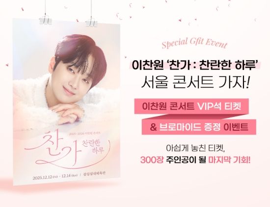 그는 오는 12월 12일부터 14일까지 서울 잠실실내체육관에서 '이찬원 콘서트 찬가: 찬란한 하루'를 개최한다.