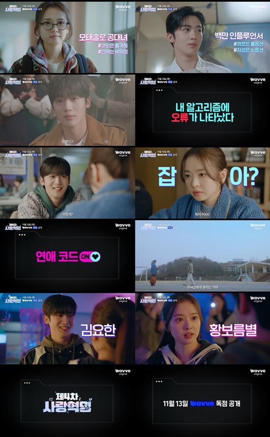 오는 13일 첫 공개되는 웨이브 오리지널 ‘제4차 사랑혁명’ 측은 6일, 개성 넘치는 열혈 청춘들의 캠퍼스 이야기를 기대케 하는 캐릭터 포스터와 메인 예고편을 공개했다.