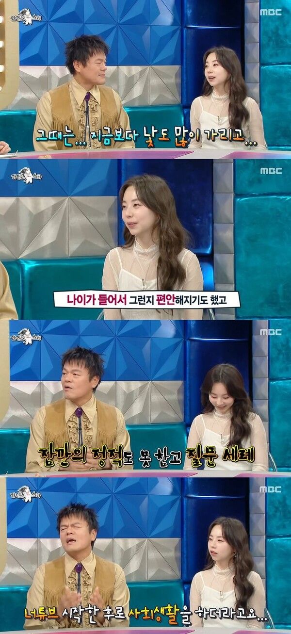 안소희는 "(14년 전 '라디오스타' 출연했을 때) 지금보다 낯도 훨씬 많이 가리고, 말수도 적고 표정도 없어서 녹화 중에 기분 괜찮냐는 말을 제일 많이 들었다"고 했다.
