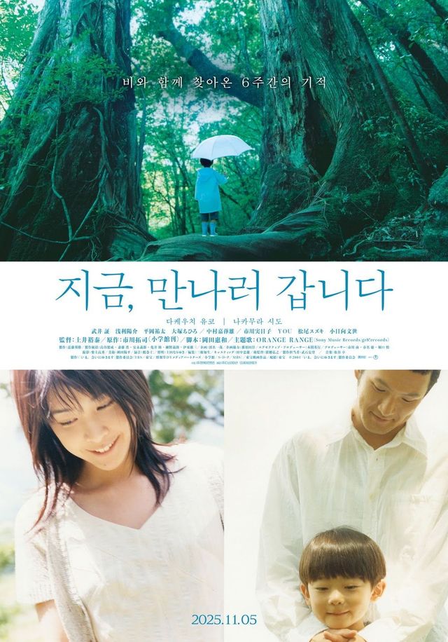 인생 멜로 영화로 많은 영화 팬들의 사랑을 받고 있는 ‘지금, 만나러 갑니다’의 빼놓을 수 없는 명장면은 1년 전에 세상을 떠났던 미오가 장마가 시작된 날 가족들과 다시 만나는 장면이다. 매일 미오를 그리워하며 비가 내리길 기도했던 타쿠미와 유우지는 평소처럼 숲속에 자리한 가족의 아지트를 찾았고 그곳에서 모든 기억을 잃은 미오와 재회한다. 미오를 집으로 데려와 잃어버린 기억을 되찾도록 도와주고 다시 새로운 추억을 쌓아가는 가족의 모습은 깊은 감동을 자아낸다.
