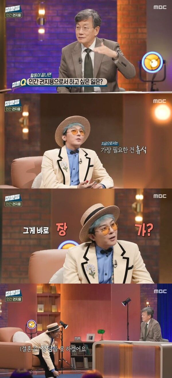 이어 지드래곤은 "장가를 가고 싶은데 장담을 못하겠다"고 말했다.