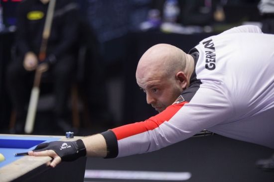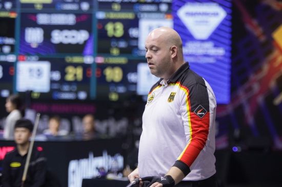 예선 경기에 나선 토비아스 부에르디크 선수(독일)의 경기 모습은 당구 팬들의 시선을 끌었다.