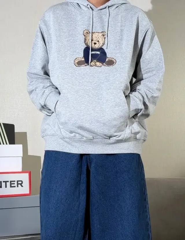 세 번째 아이템인 프레피 릴 베어 후디는 UCLA의 대표 캐릭터인 곰(베어)을 전면 아트워크로 배치해 프레피 감성을 완성했다. 멜란지 그레이와 네이비 컬러 구성에 남녀공용 사이즈로 제작되어 커플룩, 캠퍼스룩 등 다채로운 스타일링이 가능하다. 특히 인플루언서 윤성준과의 단독 기획전 이후 온라인상에서 높은 관심을 얻으며 브랜드 화제성을 끌어올렸다.