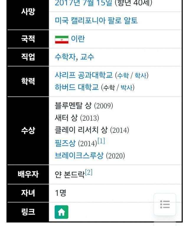 국제 수학 올림피아드에서 만점을 받고 이란최고명문 샤리프공대에서 수학을 전공 이후 하버드에서 박사학위를 받았다