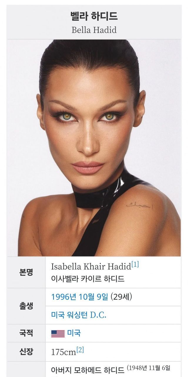 사진에서 보이듯이 어깨에 아랍어타투가있다