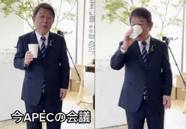 앞서 모테기 외무상은 지난달 30일 경주 APEC 회의장에서 한국 커피를 맛보고 소개하는 영상을 자신의 엑스 계정에 게재했다.