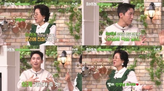 이때, 선우용여의 ‘수발러’로 합류한 유세윤이 “조건이 있습니다”라며 선생님 자격 요건을 하나씩 제시한다. ‘요리에 진심이신 분’, ‘유명세 욕심 금지’ 그리고 ‘전 국민이 바로 따라 할 만큼 쉽게 가르쳐 줄 것’ 등 ‘용여식 수업 조건’이 공개된 것. 영상만으로도 용여 학생의 스승이 될 셰프의 험난한(?) 도전을 예감케 하는 대목이다.