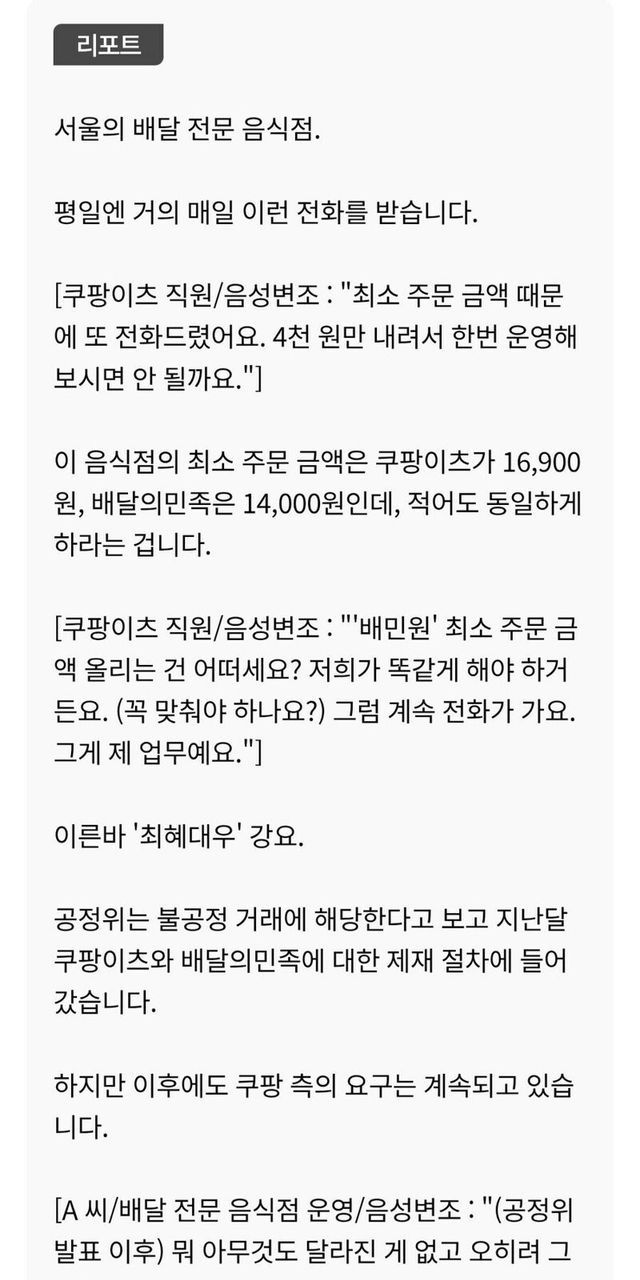 1. 쿠팡이츠가 가격이나 최소주문금액 통제함