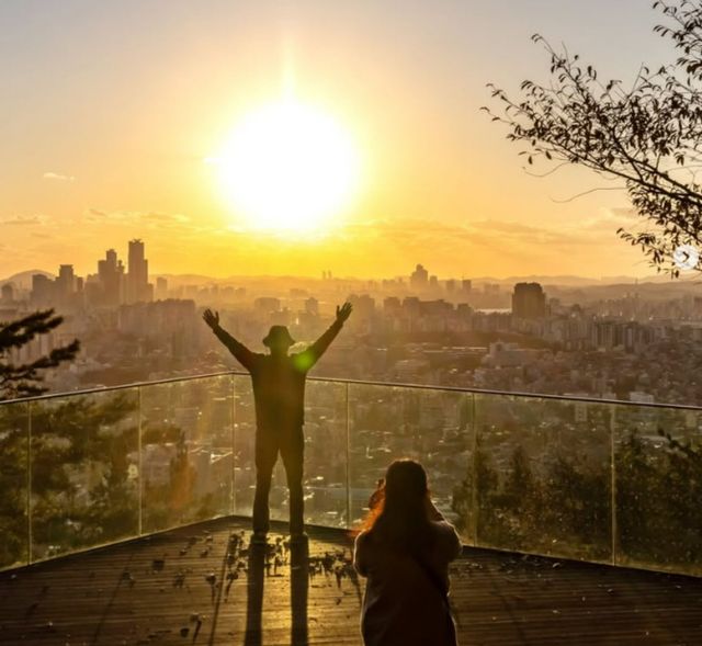 노을전망대는 유리 펜스를 활용해 마치 공중에 떠 있는 듯한 개방감을 선사하는 스카이뷰 포토존으로, 도심과 노을빛이 어우러지는 황홀한 풍경을 선사한다.