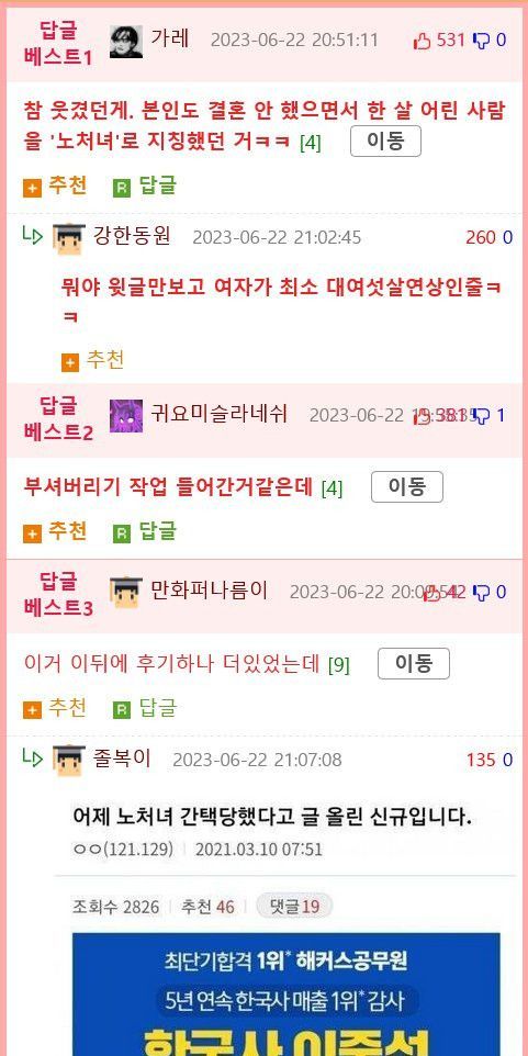 저격댓글도 아주 정확하게 특정했는지 불확실합니다