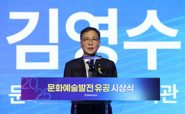 김영수 차관은 이날 서울 서대문구 모두예술극장에서 열린 ‘2025 문화예술발전 유공 시상식’ 현장을 찾아 문화훈장 등을 전수한 뒤 이같이 축하하고 격려했다.