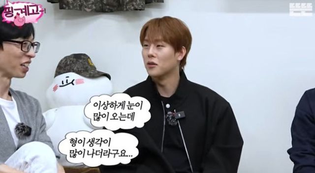 이어 유재석은 “주헌이가 군대에 있을 때 저하고도 가끔 연락을 했다. 주헌이가 그럴 때 전화하더라. 겨울에 눈 많이 오는 날”이라고 말했다. 이에 주헌은 “이상하게 눈이 많이 오는데 형이 생각이 많이 났다”라고 털어놨다. 이에 유재석은 “‘뭐하냐?’ 물으면 ‘눈 치우고 있습니다’라고 한다”라고 밝혔다. 이에 주우재 역시 “주헌이가 뜬금없이 한 번씩 연락한다”고 거들었다.