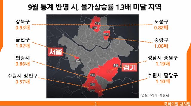 지난달 30일 기재위 국정감사에서 관련 의혹을 처음으로 제기한 천하람 개혁신당 의원은 6~8월 통계가 아닌 7~9월 통계를 사용했다면 △서울시 도봉구 △서울시 강북구 △서울시 중랑구 △서울시 금천구 △경기도 의왕시 △경기도 성남시 중원구 △수원시 장안구 △수원시 팔달구 등 8개 지역은 조정지역 대상 최소요건을 충족할 수 없기에 철회돼야 한다고 주장합니다.