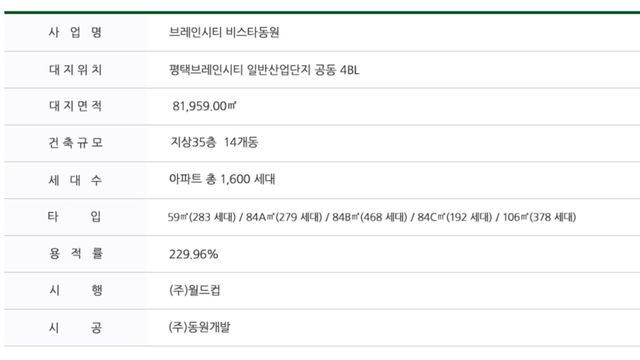 대표적으로 '평택 브레인시티 대광로제비앙 그랜드센텀'의 84㎡ 분양가는 5억3,700만 원, '평택 브레인시티 한신더휴'는 5억1,700만 원이었다. 동일 면적 기준으로 비교했을 때 가격 경쟁력이 떨어진다는 지적이 나온다.