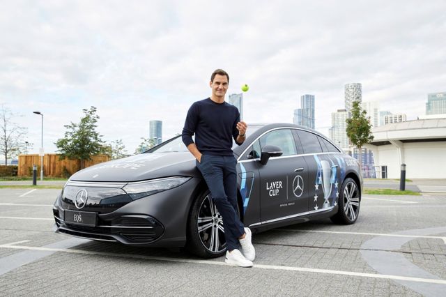 로저 페더러가 레이버 컵 테니스 대회를 계기로 메르세데스벤츠의 전기차 EQS를 홍보하는 모습. 메르세데스벤츠코리아 제공