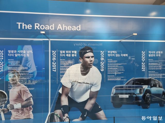 서울 성동구 ‘기아 언플러그드 그라운드’에 전시물로 꾸며진 라파엘 나달의 커리어. 김도형 기자 dodo@donga.com
