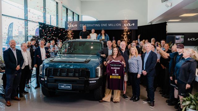 기아가 올해 9월 호주 북동부 퀸즈랜드의 딜러사에서 개최한 ‘100만대 판매 달성 기념식’의 모습. 기아 제공