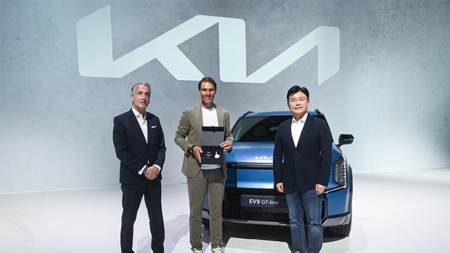 지난 2023년 스페인 마드리드 IFEMA 컨벤션센터에서 기아가 라파엘 나달에게 EV9 GT라인 모델을 전달하는 모습. 기아 제공