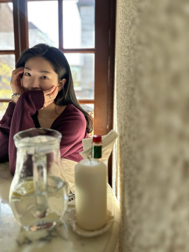 공개된 사진 속 류이서는 자주빛 니트를 입은 채 카페 창가에 앉아 포즈를 취하고 있다. 따뜻한 햇살이 얼굴을 감싸 청초한 분위기를 자아낸다.