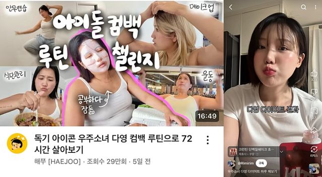 “새벽 5시에 일어나 물을 마시고, 영양제와 도라지청을 챙긴 뒤 성경을 읽고 영어 공부 2시간으로 하루를 시작한다”는 그의 루틴은 각종 숏폼 콘텐츠로 재생산되며 ‘독기 아이콘’이라는 별명까지 낳았다. 실제로 한 유튜버가 공개한 ‘독기 아이콘 우주소녀 다영 컴백 루틴으로 72시간 살아보기’ 영상은 조회수 30만 회에 육박하며 뜨거운 반응을 얻고 있다.