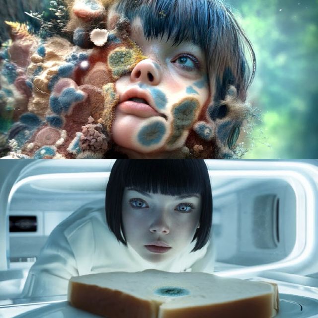 곰팡이는 인류가 만들어낸 ‘오염’을 감각의 회복과 생명의 재생으로 재해석한 작품이다. 전 장면이 ComfyUI, Midjourney, Kling 등 다양한 생성형 AI 도구를 기반으로 구현돼, 인간의 연출 의도와 알고리즘의 자율적 생성이 결합해 독특한 영상미를 완성했다.