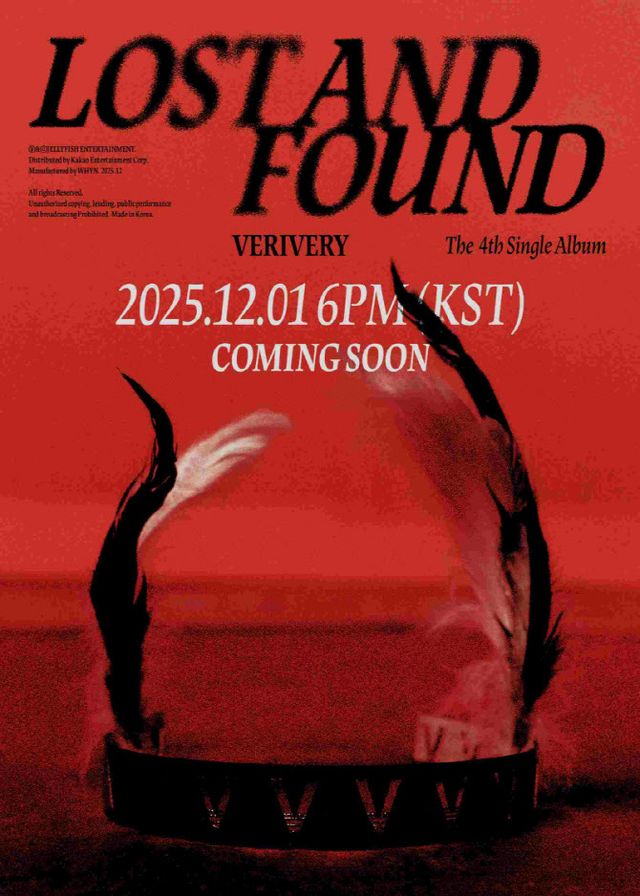 포스터에 고대 신화의 왕관을 연상케 하는 오브제가 담겨 있어 호기심을 자극한다. 이마에 닿는 부분은 베리베리의 대표 이니셜인 ‘V’가 둘러 새겨져 있고, 여기에 비대칭 길이의 깃털이 장식돼 있다. 과연 오브제 속에 베리베리의 싱글 4집 ‘로스트 앤 파운드’ 힌트가 숨겨져 있는 것인지 궁금증을 유발하고 있다.