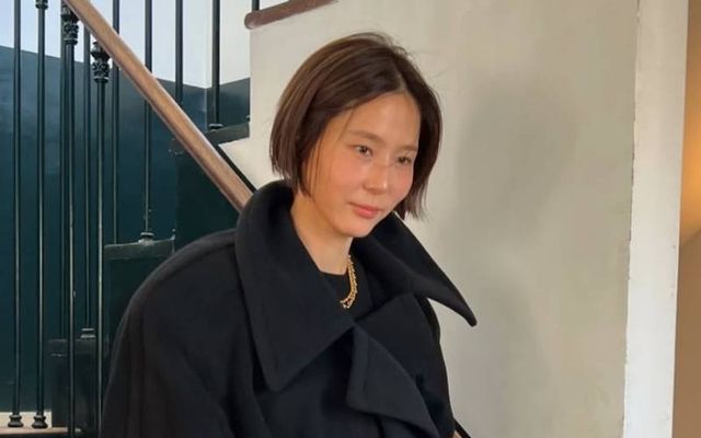 미우미우의 핑크 컬러 아가일 니트에 그레이 플리츠 스커트, 로퍼를 매치해 상큼한 미우미우 걸이 된 민니. 여기에 층을 많이 낸 레이어드 헤어로 힙한 무드를 한 스푼 더했어요.