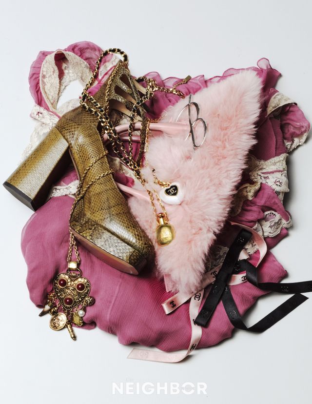 (위부터) Chloé 레이스 포인트 드레스 7백82만원, 로티 펌프스 2백48만원, 보틀 펜던트 네크리스 1백35만원, 하트 펜던트 네크리스 2백56만원.