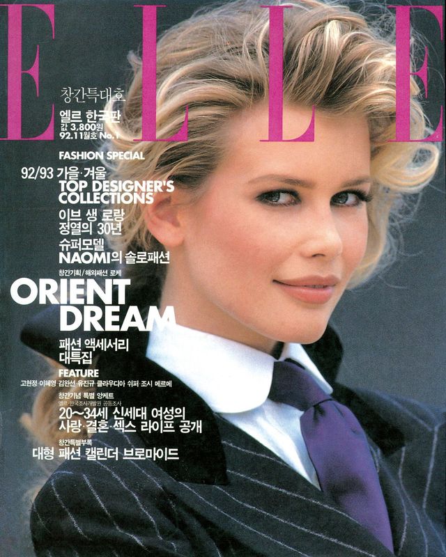 바야흐로 슈퍼모델의 전성기를 맞이한 1980년대. 1987년 엘 맥퍼슨(Elle Macpherson)은 샴브레이 셔츠를 골반에 묶은 채 토플리스로 〈엘르〉 표지를 장식했다. 신디 크로퍼드(Cindy Crawford), 스테파니 세이무어(Stephanie Seymour), 야스민 르 본(Yasmin Le Bon) 등의 모델도 포토그래퍼 질 벤시몽(Gilles Bensimon)의 렌즈에 담겨 〈엘르〉 커버에 등장했다. 또 여성의 사회생활이 당연한 것으로 여겨지면서 〈엘르〉 지면에는 일도 열심히 하는 동시에 건강하고 에너지가 넘치는 40~50대 여성들이 다양하게 등장했다. 당대 시선에서는 이마저도 굉장히 신선했던 지점이다. 이에 힘입어 〈엘르〉는 국제적 브랜드로 성장하며 미국, 스페인, 이탈리아, 중국, 태국, 인도 에디션을 출간했다. 시대적으로나 〈엘르〉 내부적으로나 변화의 바람이 불고 있었다.