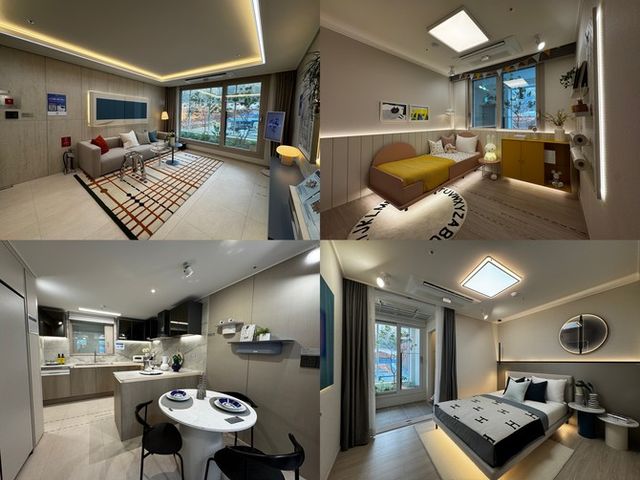 거실은 가로폭을 충분히 확보해 소형 평형 특유의 세로형 압축감이 덜한 편이다. 주방은 일자형으로 배치됐다. 조리대 상부장 대신 열린 벽면 설계가 적용된 점이 특징이다. 특히 시각적 개방감을 높여 요리·식사 공간이 거실과 분리되지 않으면서도 답답하지 않은 인상을 준다.
